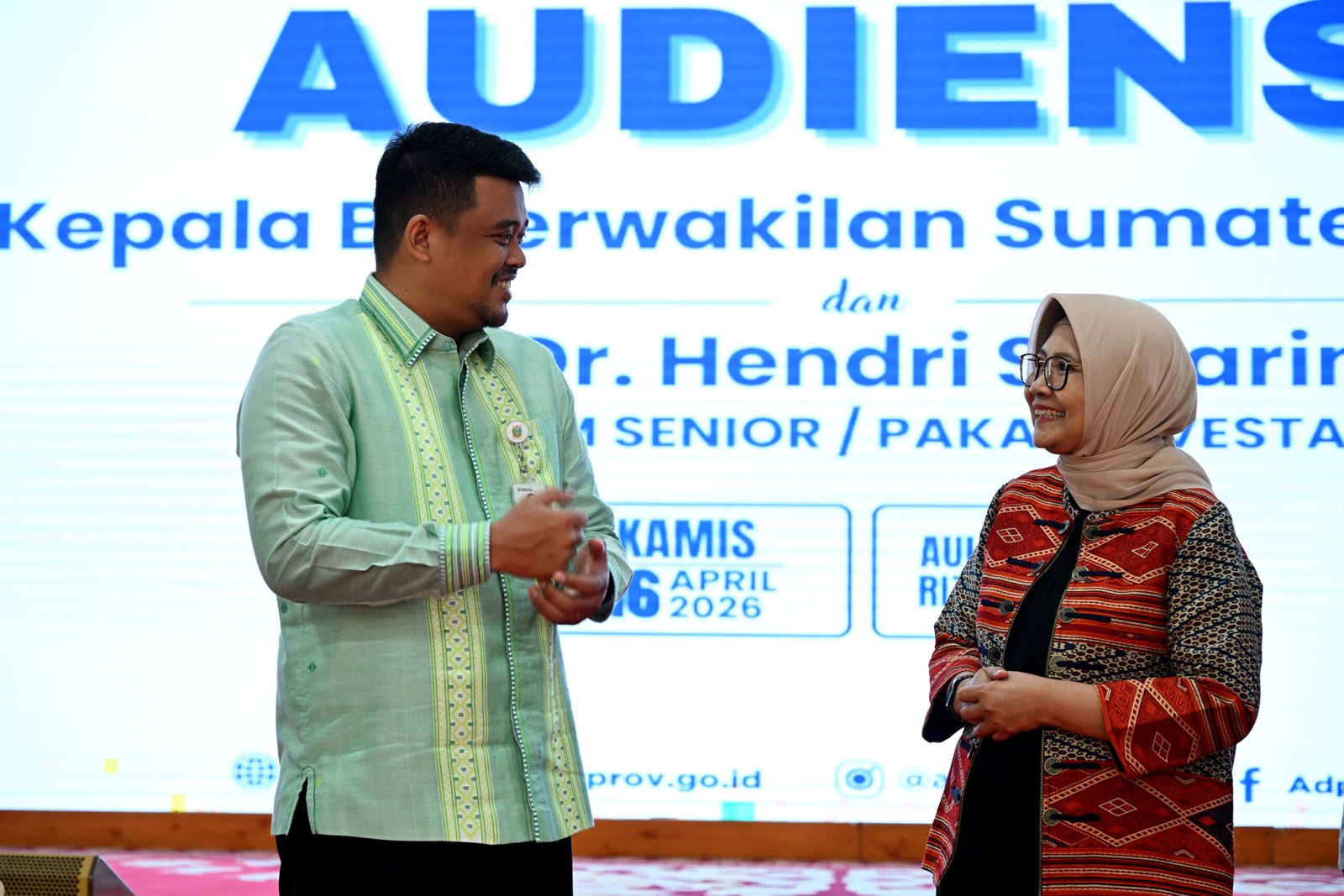 Hal tersebut disampaikan Bobby Nasution saat menerima audiensi Kepala Perwakilan BI Provinsi Sumut Rudy Brando Hutabarat bersama ekonom senior dan pakar investasi nasional Hendri Saparini, di Aula Tengku Rizal Nurdin, Jalan Sudirman, Medan, Kamis (16/04/2026). Pertemuan membahas strategi pengendalian inflasi, penajaman kebijakan investasi, serta optimalisasi sektor riil berbasis potensi lokal.