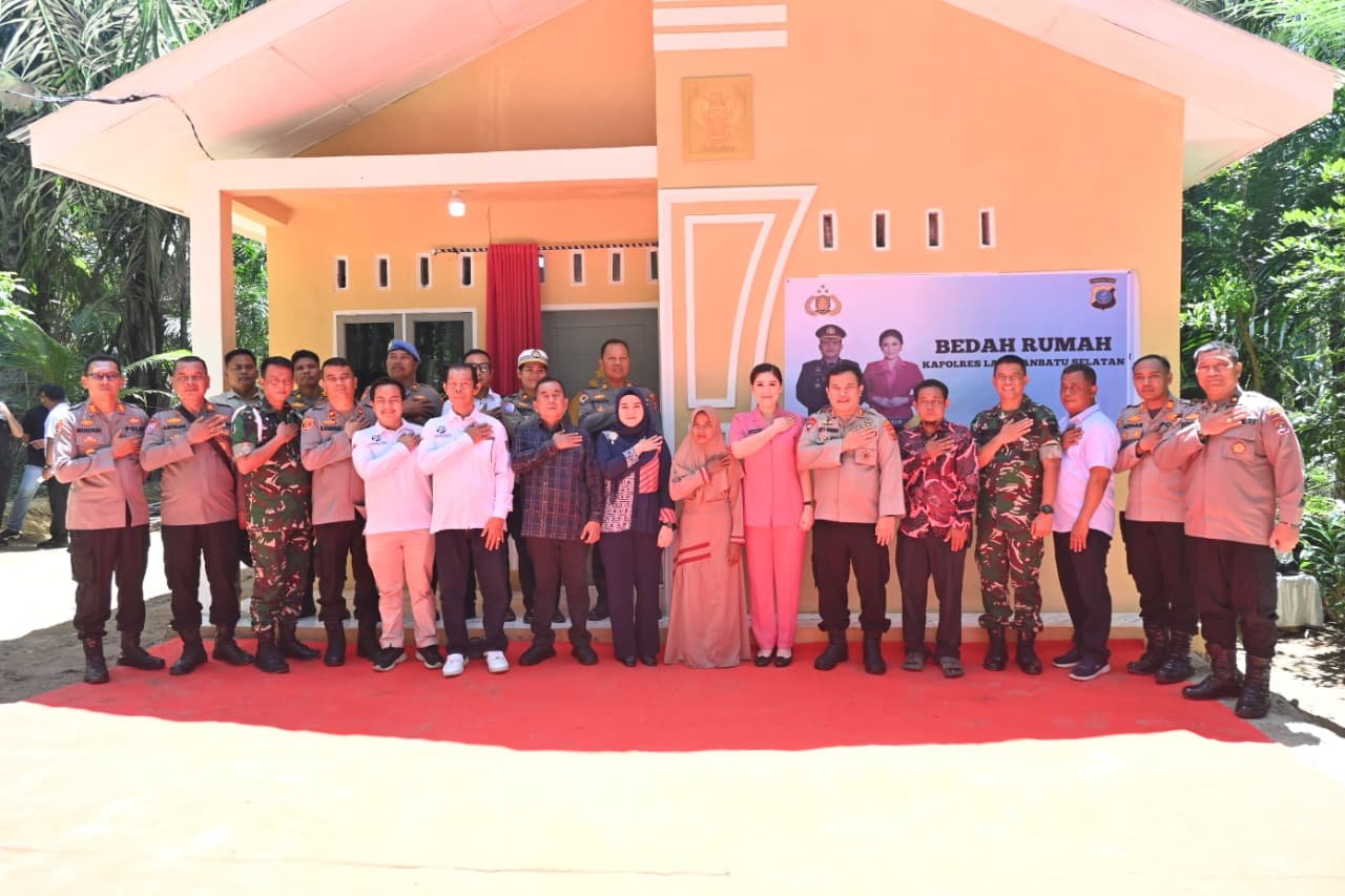 Kapolres AKBP Aditya SP Sembiring Muham telah meresmikan hasil program bedah rumah dan secara simbolis menyerahkan kunci rumah kepada Junaedi dan keluarga, warga Dusun Pasar 12, Desa Aek Batu, Kecamatan Torgamba, Kabupaten Labusel pada Sabtu (01/11/2025).