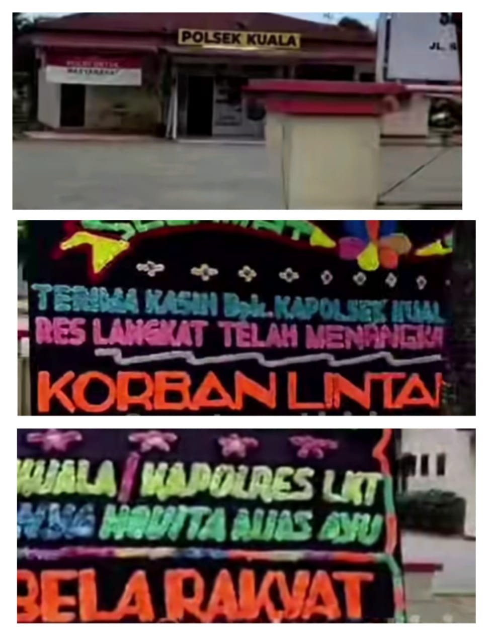BLOKBERITA.COM – Pihak Polsek Kuala Resort Langkat di Jalan Besar Binjai-Kuala, Desa Bela Rakyat, Kecamatan Kuala telah dikirimi sejumlah papan bunga dari masyarakat yang menjadi korban tindak pidana.