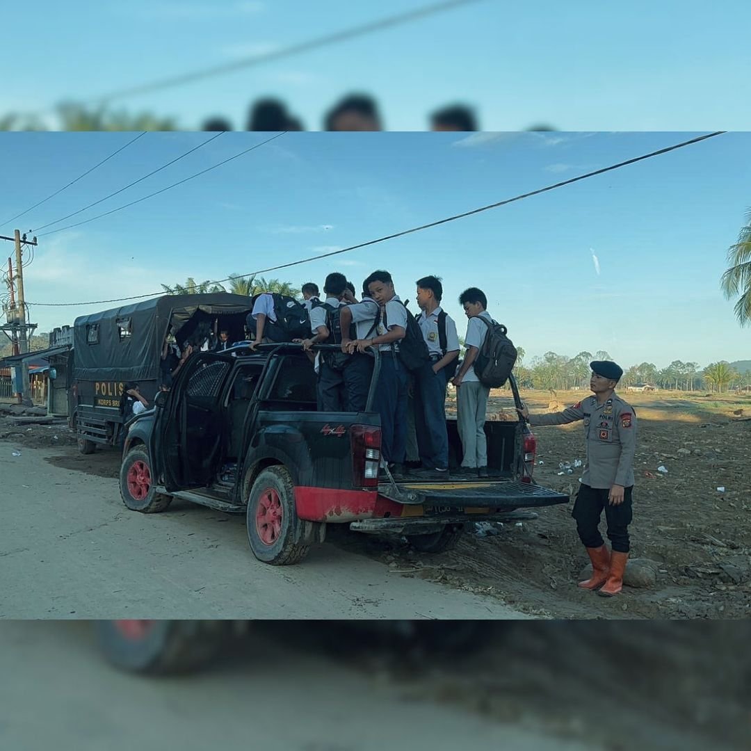 Dengan penuh kepedulian dan ketulusan, para personel Brimob menjemput satu per satu siswa dari rumah mereka dan mengantarkan hingga ke sekolah masing-masing. Wajah-wajah ceria dan senyum penuh syukur terpancar dari para siswa/i yang akhirnya dapat kembali mengikuti proses belajar mengajar, meski wilayah mereka masih dalam tahap pemulihan pascabencana.