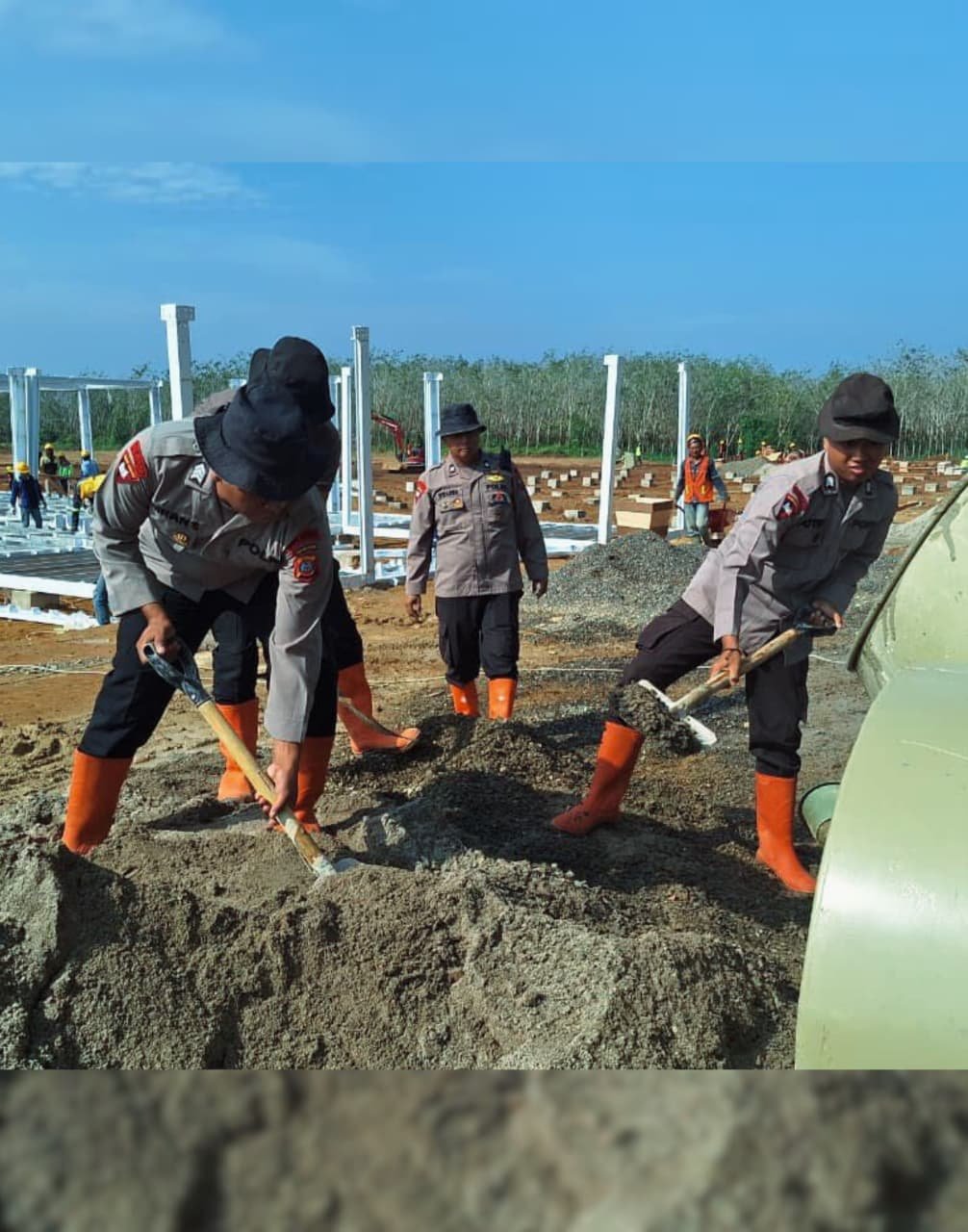 Dengan peralatan sederhana dan semangat gotong royong, personel Brimob bekerja berdampingan bersama warga—membersihkan lumpur, meratakan tanah, memperbaiki parit, hingga menata kembali ruang-ruang kehidupan yang sempat terhenti. Setiap ayunan cangkul dan setiap tetes keringat menjadi simbol pengabdian dan kepedulian tanpa pamrih.