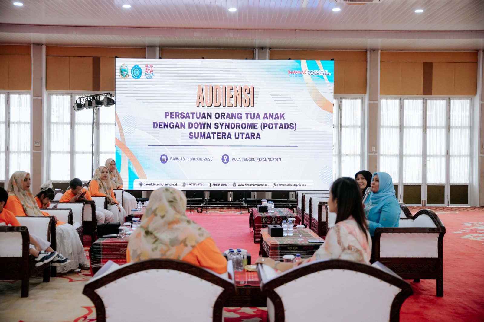 BLOKBERITA.COM – Ketua Tim Penggerak Pemberdayaan dan Kesejahteraan Keluarga (TP PKK) Provinsi Sumatera Utara (Sumut), Kahiyang Ayu, menyatakan dukungannya terhadap pelaksanaan Hari Down Syndrome Sedunia tingkat Sumut tahun 2026. Dukungan tersebut disampaikan saat menerima audiensi Persatuan Orang Tua Anak Dengan Down Syndrome (POTADS) di Aula Tengku Rizal Nurdin, Jalan Sudirman, Medan, Rabu (18/02/2026).