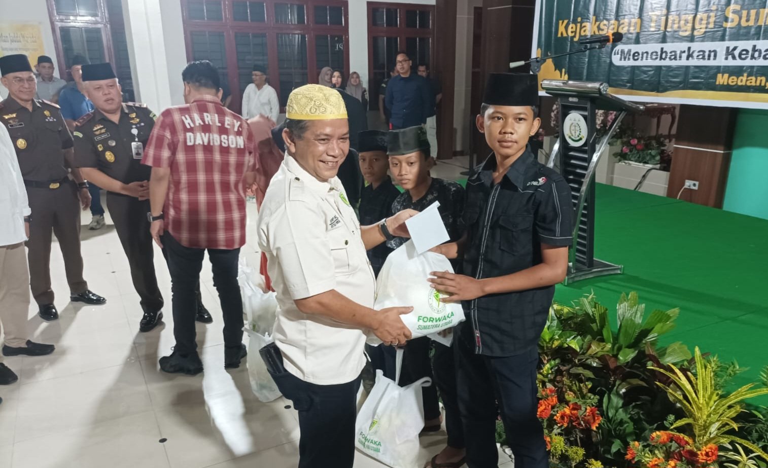 Ketua Forwaka Sumut Bagikan Paket Lebaran kepada Anak Yatim saat Buka Puasa Bersama Kejati Sumut