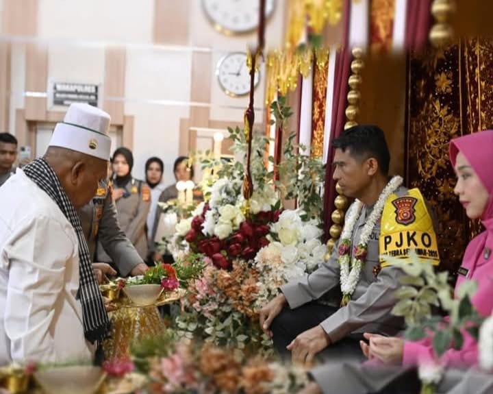 Kapolda Aceh Irjen Marzuki dan Ketua Bhayangkari ditepung tawari oleh tokoh agama saat Kunker di Mapolres Pidie. (foto : dok)