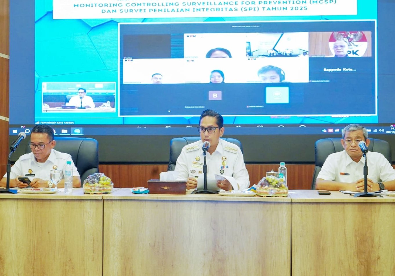 Hal itu disampaikan Wali Kota Medan, Rico Tri Putra Bayu Waas, saat memimpin Rapat Koordinasi Evaluasi Pelaksanaan Monitoring Controlling Surveillance for Prevention (MCSP) dan Survei Penilaian Integritas (SPI) 2025 di Balai Kota Medan, Rabu (8/10/2025).