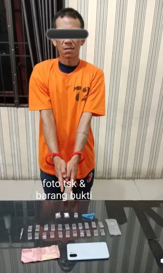 Dari hasil penggeledahan tersebut, petugas menemukan barang bukti berupa tiga paket plastik klip berisi diduga narkotika jenis sabu 1,38 gram. Satu paket ditemukan diselipkan di pinggang tersangka, sementara dua paket lainnya ditemukan di dalam rumah, tepatnya di lantai dua yang disimpan bersama sejumlah plastik klip kosong dan alat bantu berupa pipet yang telah dimodifikasi.