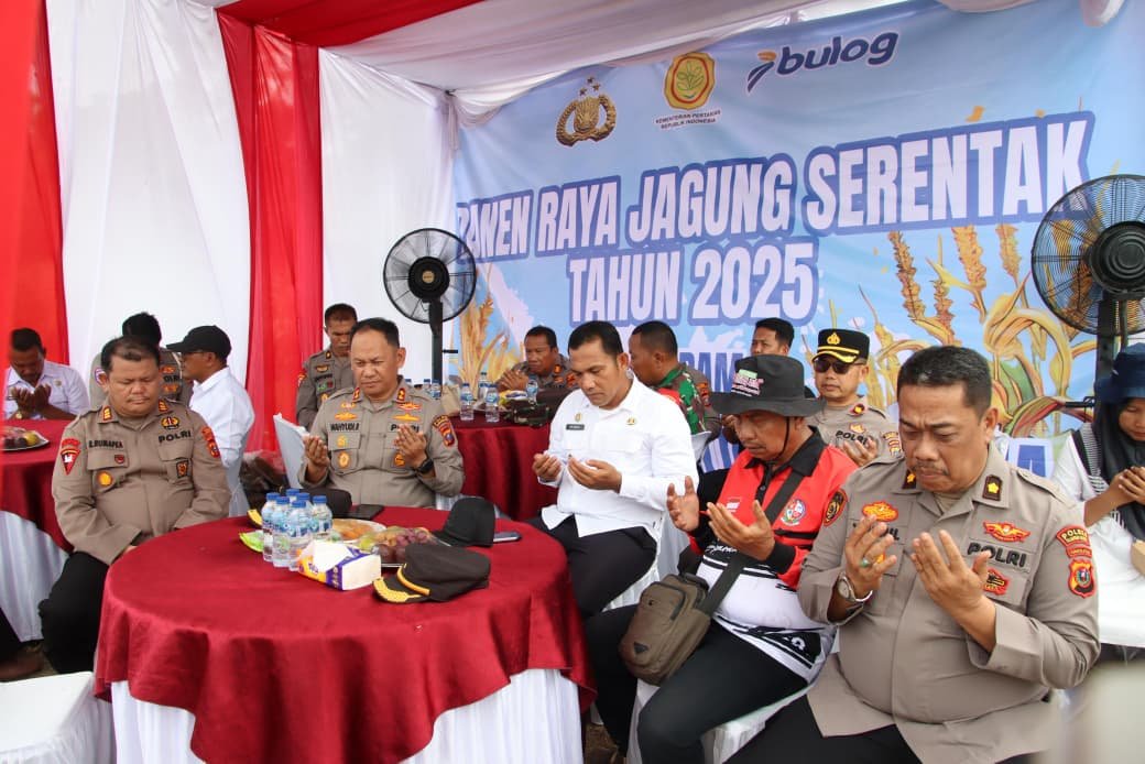 ” Lahan yang kita panen hari ini seluas lima hektare dengan perkiraan hasil mencapai tiga puluh ton jagung. Hasil panen ini nantinya akan kita salurkan ke Bulog untuk membantu memenuhi kebutuhan pangan masyarakat,” jelas AKBP Wahyudi Rahman.