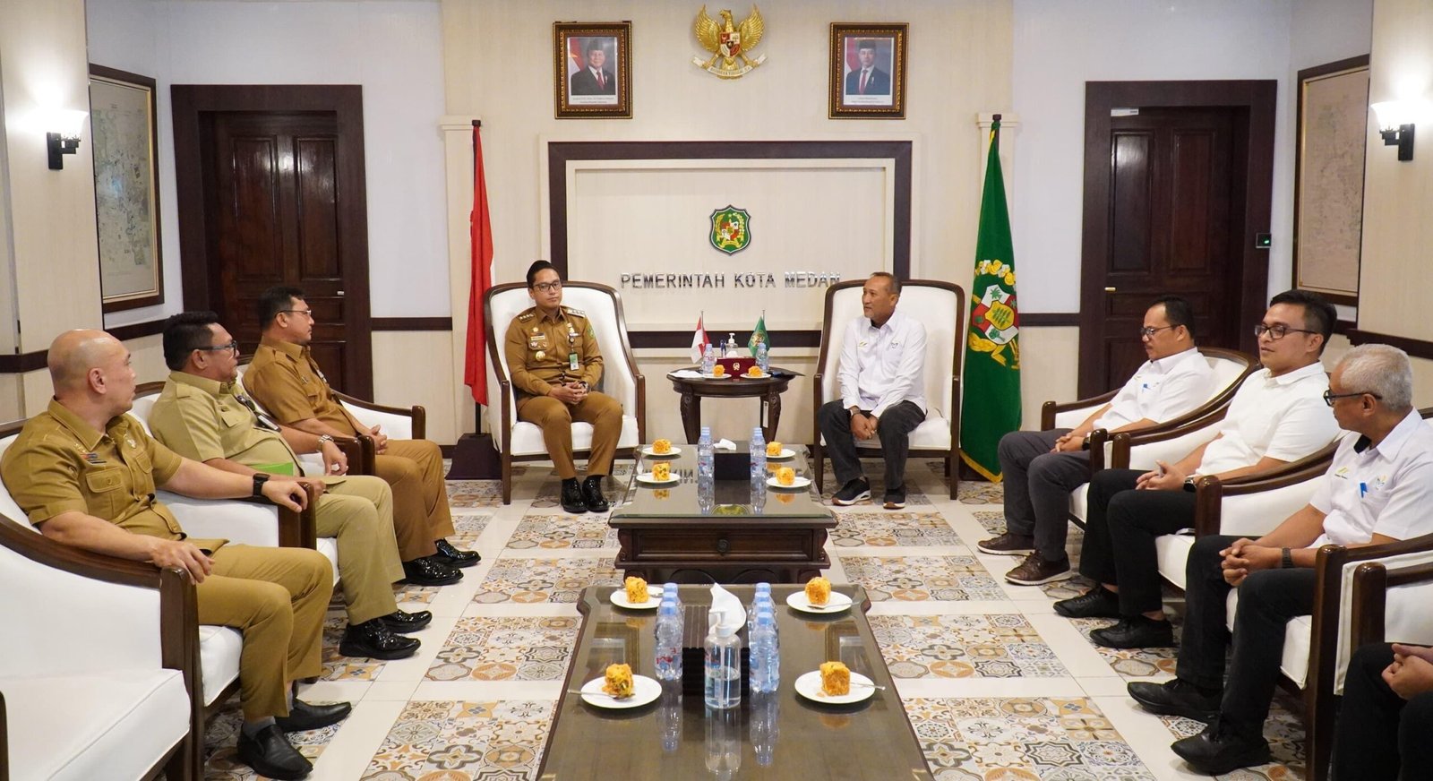 BLOKBERITA.COM – Region Head PT Perkebunan Nusantara I Regional 1, Didik Prasetyo, melakukan kunjungan silaturahmi ke Kantor Wali Kota Medan. Kehadiran Didik dan rombongan disambut langsung oleh Wali Kota Medan, Rico Tri Putra Bayu Waas, atau yang akrab disapa Rico Waas, selasa (21/10/25).