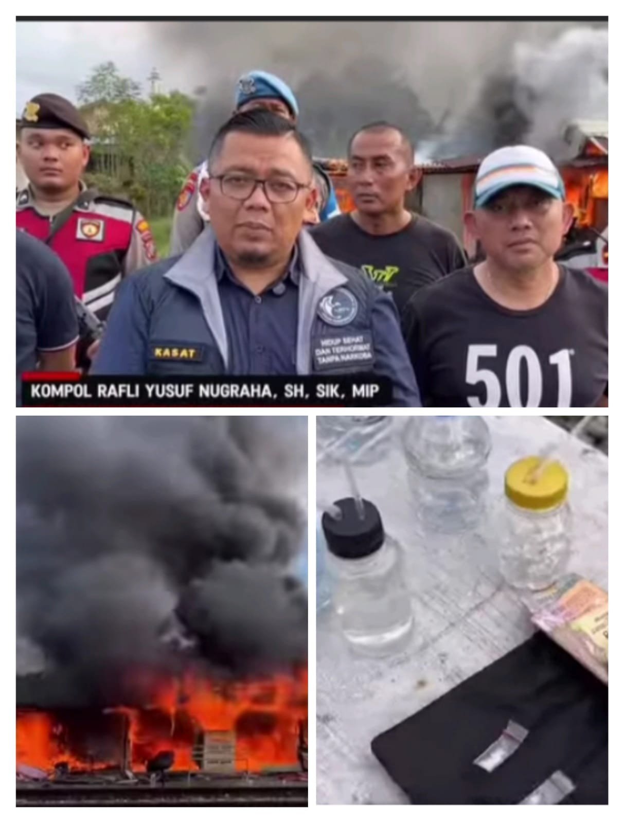 Selain mengamankan para tersangka, petugas juga membongkar dan memusnahkan tiga barak narkoba yang berada di lokasi dengan cara dibakar, guna mencegah tempat tersebut kembali digunakan sebagai sarang peredaran narkotika.