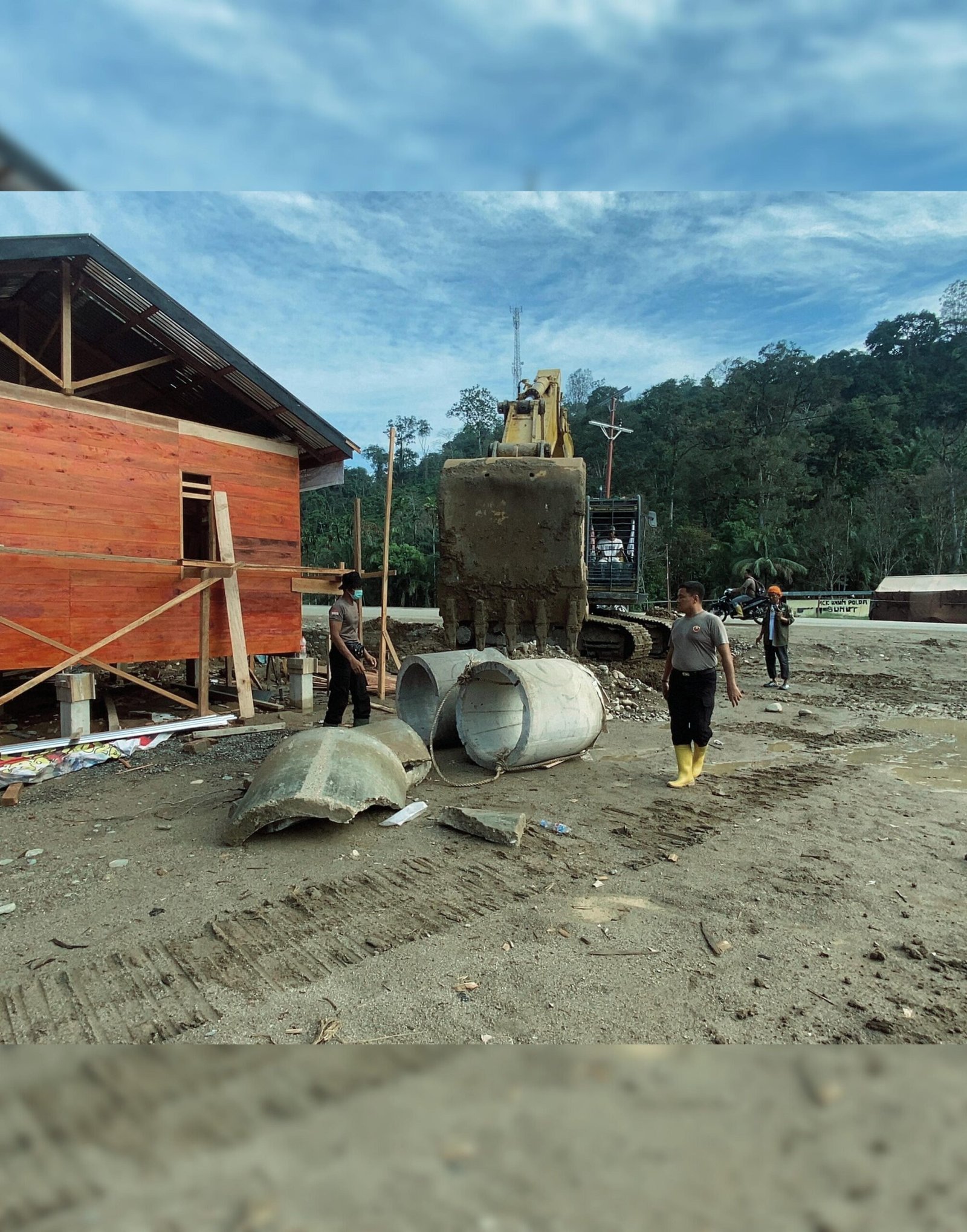 Selain itu, personil Brimob turut membantu warga dalam penyambungan dan penanaman pipa air menuju rumah-rumah warga guna memastikan ketersediaan akses air bersih. Upaya tersebut dilakukan secara gotong royong bersama masyarakat setempat sebagai langkah konkrit mendukung pemulihan kehidupan sehari-hari warga pascabencana.