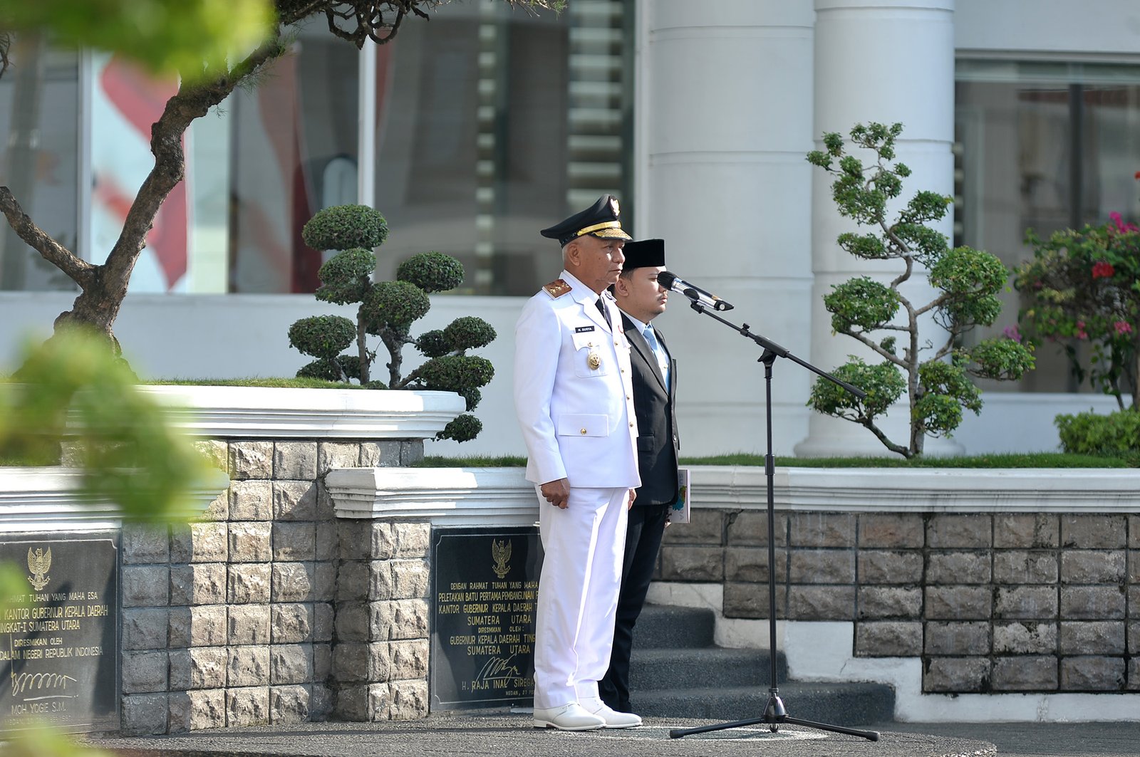 BLOKBERITA.COM – Wakil Gubernur (Wagub) Sumatera Utara (Sumut) Surya memimpin upacara Peringatan Hari Otonomi Daerah ke-30 yang diselenggarakan di Halaman Kantor Gubernur, Jalan Pangeran Diponegoro, Medan, Senin (27/04/2026). Dalam kesempatan tersebut, Surya membacakan sambutan Menteri Dalam Negeri (Mendagri) Muhammad Tito Karnavian, yang dihadiri seluruh ASN di lingkungan Pemprov Sumut.